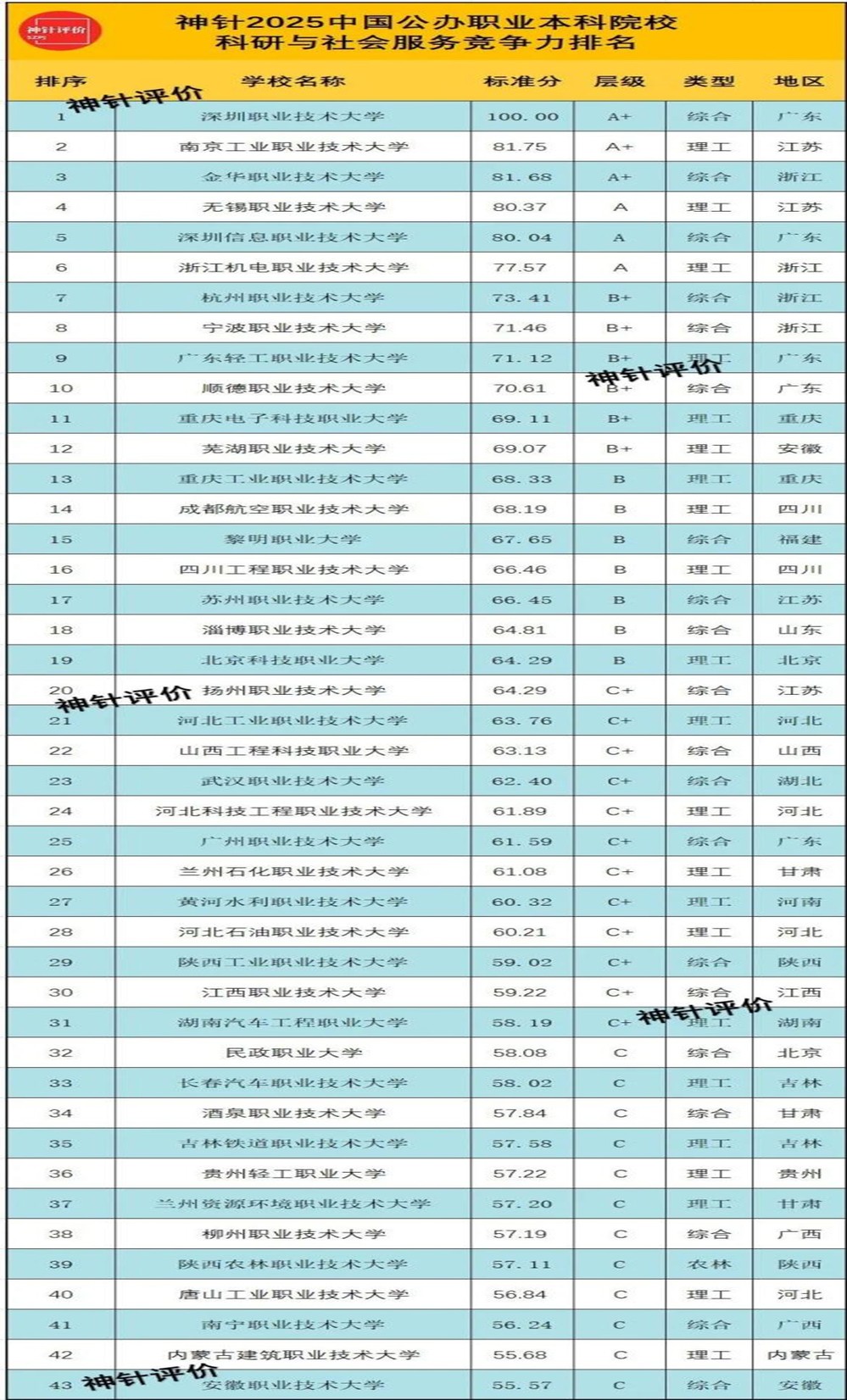 近日,神针评价(SZPJ)正式发布了《2025中国职业本科院校科研与社会服务竞争力排名》。必赢官网在全国86所职业本科院校中脱颖而出,位列全国20名,充分彰显了学校在科研创新和社会服务领域的综合实力与发展成效。