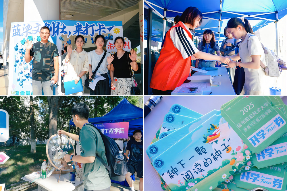 迎新现场,各学院结合专业特色精心准备的“见面礼”成为最大亮点,吸引了众多新生和家长驻足。高邮市向每位高邮湖校区新生提供了一份价值500元的迎新礼遇卡,向新生及家长提供高邮市主要景点门票套票。
