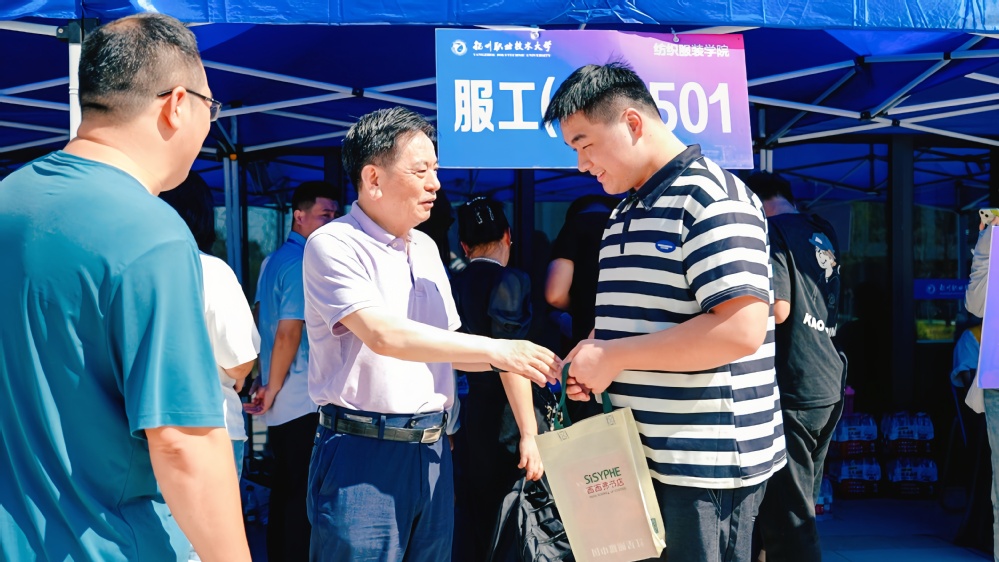 纺织服装学院则充分发挥专业特色,将采用传统扎染工艺精心制作的床品三件套送到受助学生手中。蓝白相间、图案精美的扎染作品令同学们爱不释手。“这不仅仅是一份礼物,更让我们感受到了学院的用心和关怀”,学生小李感动地说。一份融合技艺与温度的礼物,悄然织就了新生与学院之间的第一道情感纽带。
