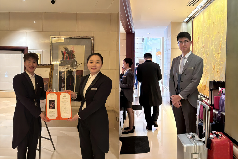 7月起,旅游学院组织大三学生开展为期6个月的顶岗实习。进入实习单位后,学生们分布在前台接待、GRO、客房管家、大堂吧、餐饮服务等核心岗位。等关键岗位,从客群日常接待、客房标准化管理,到配合酒店完成高规格服务场景的配套工作,均以严谨的专业态度完成各项任务,展现出扎实的职业素养与适应能力。