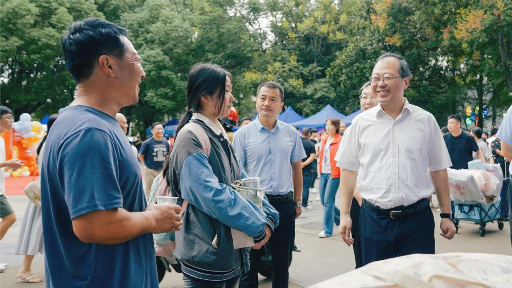 这里正在开展一场别开生面的“以书换蔬”活动。新生们用从家中带来的旧书,即可换得学长学姐亲手种植的黄瓜、小番茄、胡萝卜或多肉盆栽。每一份蔬菜、每一株绿植,不仅凝聚着农艺学子的汗水,更承载着知识与劳动相结合的育人理念。后续,所有回收的旧书将捐赠至学校“一站式学生社区”,供学生免费取阅,持续传递书香与温暖。