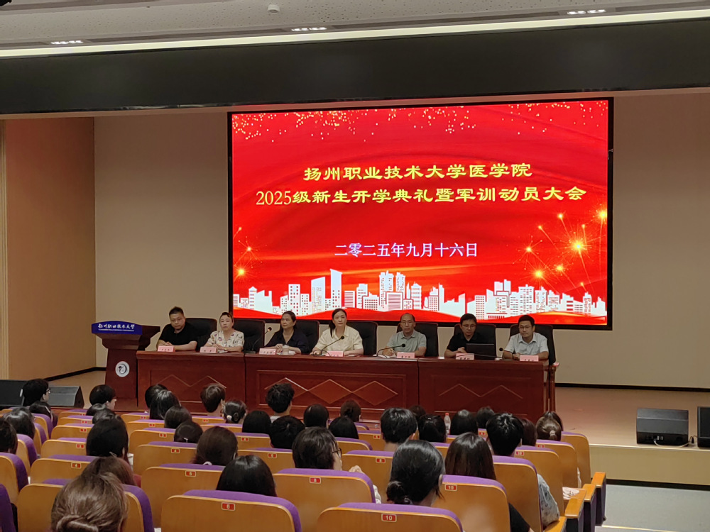 【医学院】近日,医学院2025级新生开学典礼暨军训动员大会在高邮湖校区图书馆报告厅举行。医学院全体领导班子、新生班主任和235名新生齐聚一堂,热烈庆贺新生正式开启了“健康所系,性命相托”的医学征程。