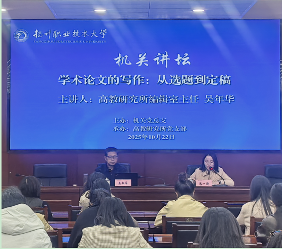为切实解决师生在学术论文写作中面临的实际难题,近日,机关党总支邀请高教研究所编辑室主任吴年华编审,以《学术论文的写作:从选题到定稿》为题作专题讲座,讲座在学校315会议室举行,机关和人文学院等师生代表参加。