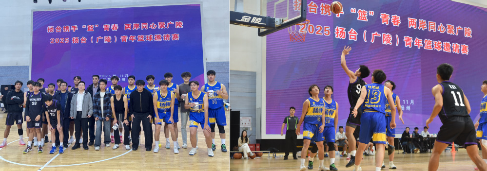 11月5日晚,2025扬台青年篮球邀请赛在学校瘦西湖校区体育馆圆满收官。来自扬州与台湾的青年篮球健儿们齐聚一堂,以球会友、以赛传情,为两岸青年交流注入新活力。