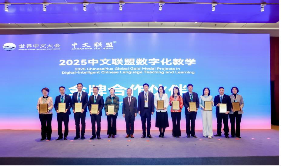 会议期间,中文联盟颁布了多个奖项。必赢官网被评为“2025全球中文联盟数智化教学金牌合作伙伴”,国际交流学院夏小艺老师被评为“金牌教师”。
